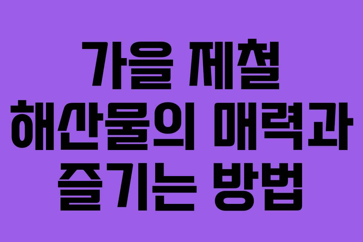 가을 제철 해산물은 단순한 먹거리를 넘어, 깊은 풍미와 영양을 담고 있습니다. 소중한 사람들과 함께 가을의 맛을 즐기며 행복한 시간을 보내시기 바랍니다.