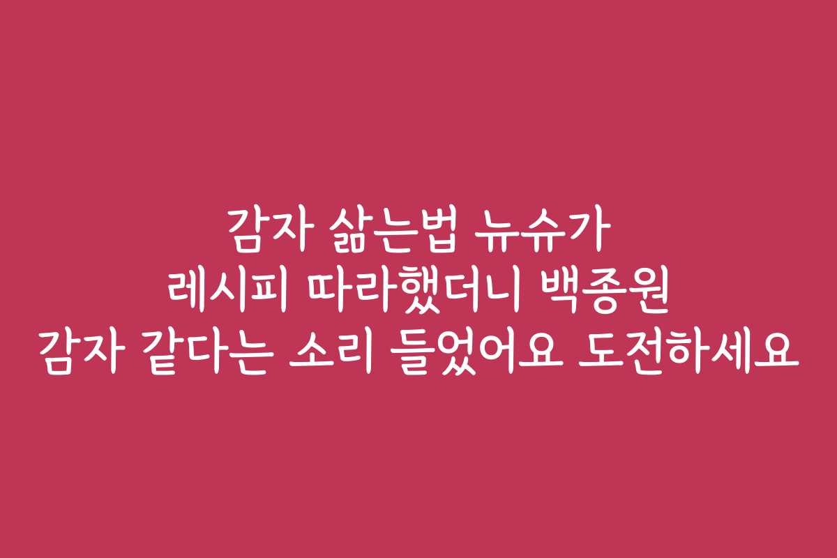뉴슈가 레시피는 특히 감자의 단맛을 잘 살려주는 비법이 담겨 있습니다. 이 레시피를 통해 백종원 스타일의 감자를 직접 만들 수 있습니다.