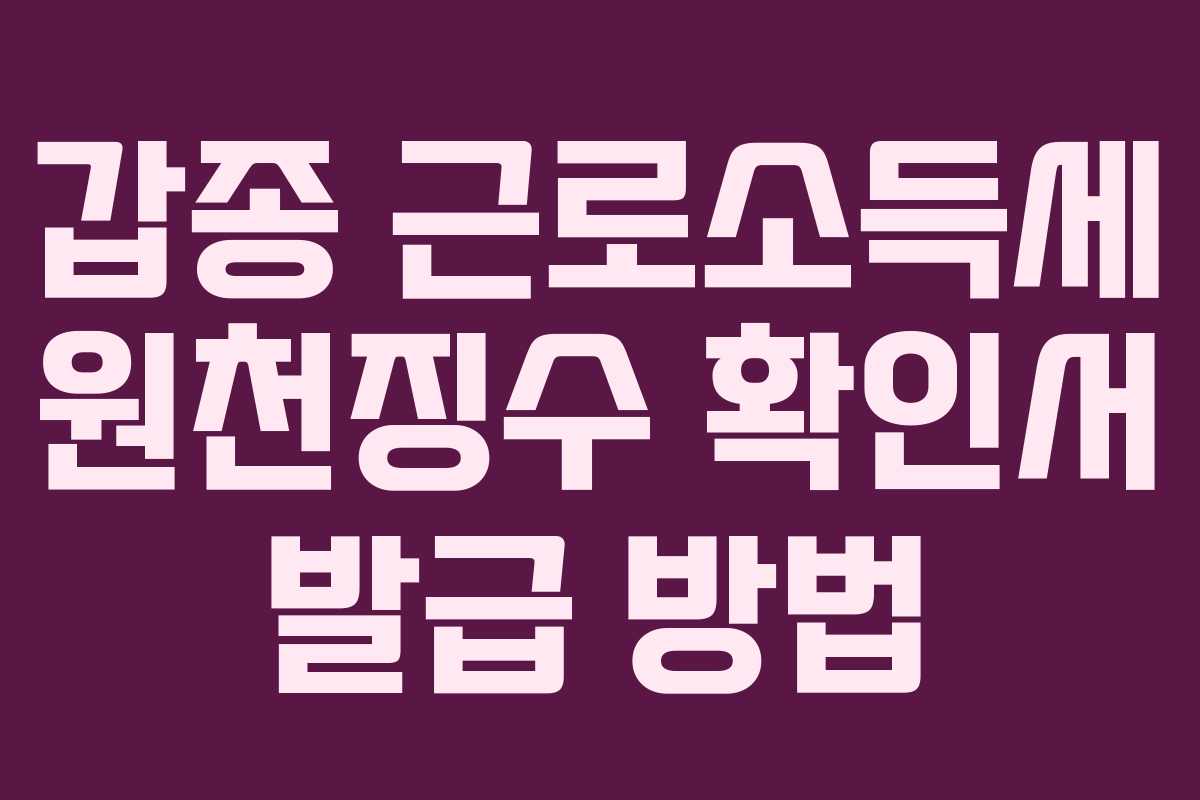 갑종 근로소득세는 직장인이 소득에 대해 납부해야 하는 세금으로, 원천징수 방식으로 징수됩니다. 이 글에서는 갑종 근로소득세 원천징수 확인서의 발급 방법과 관련된 정보를 제공하겠습니다.