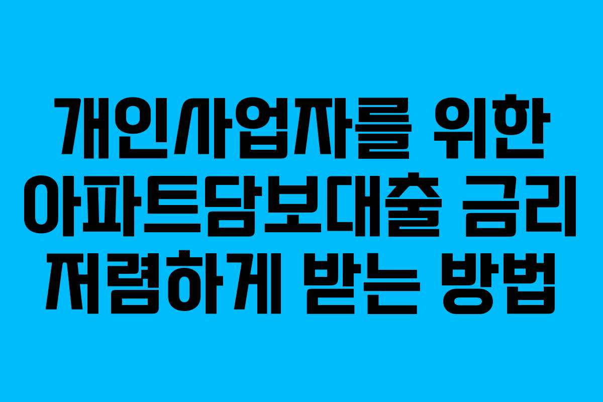 개인사업자분들이 아파트담보대출을 통해 자금을 조달하는 과정은 복잡할 수 있습니다. 특히 대출 금리가 높은 현재 상황에서는 더욱 저렴하게 금리를 받는 방법이 필요합니다.