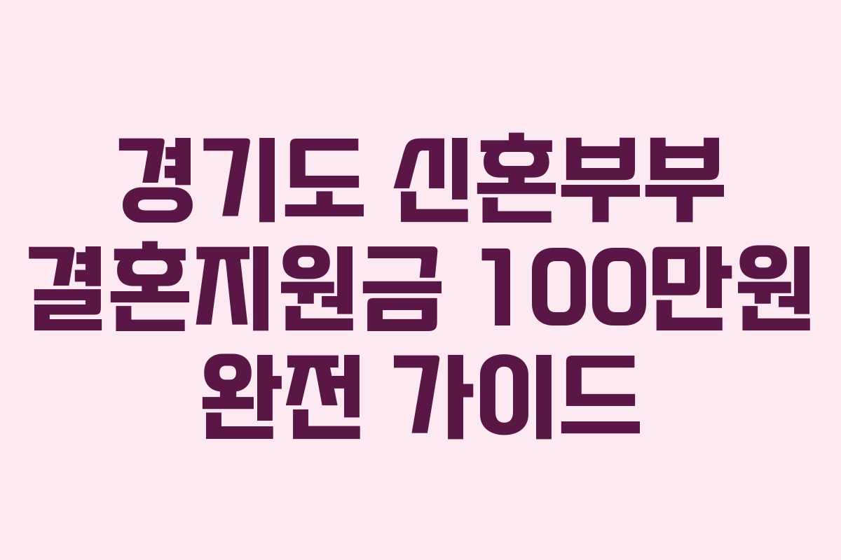 경기도 신혼부부 결혼지원금 100만원 완전 가이드