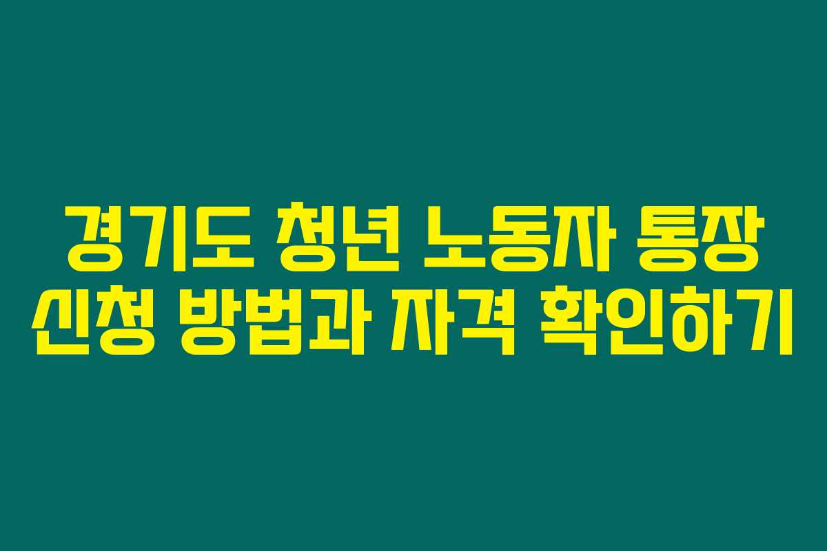 경기도 청년 노동자 통장 신청 방법과 자격 확인하기