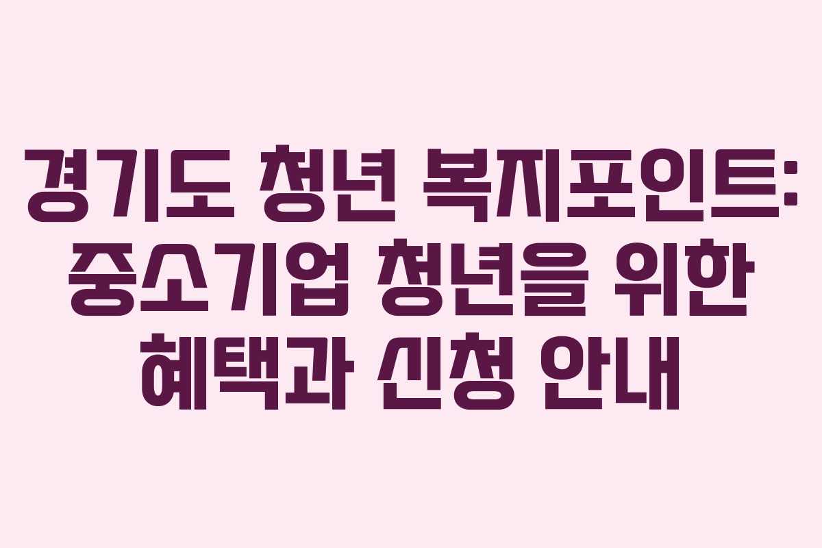 경기도 청년 복지포인트는 중소기업에서 근무하는 청년들에게 제공되는 다양한 복리후생 혜택을 통해, 청년들의 삶의 질을 향상시키고 경기도의 경제적 발전을 도모하는 프로그램입니다. 이 프로그램의 주요 내용과 신청 방법을 자세히 알아보겠습니다.