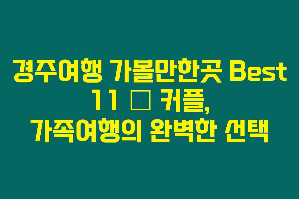 경주는 아름다운 역사와 문화, 그리고 사람들을 잇는 특별한 장소로 가득 차 있습니다. 여행 계획 중이라면 경주여행 가볼만한곳 11곳을 꼭 기억하세요!