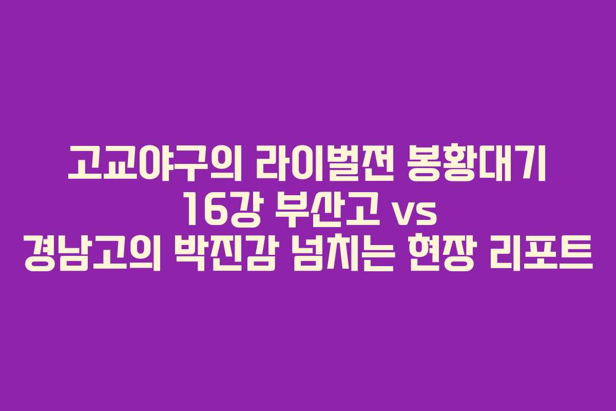 아래를 읽어보시면 봉황대기 16강에서 벌어진 부산고와 경남고의 박진감 넘치는 대결의 모든 순간 선수들의 투타 교체 결정적 장면 현장의 분위기까지 생생하게 담긴 현장 기록을 만나보실 수 있습니다