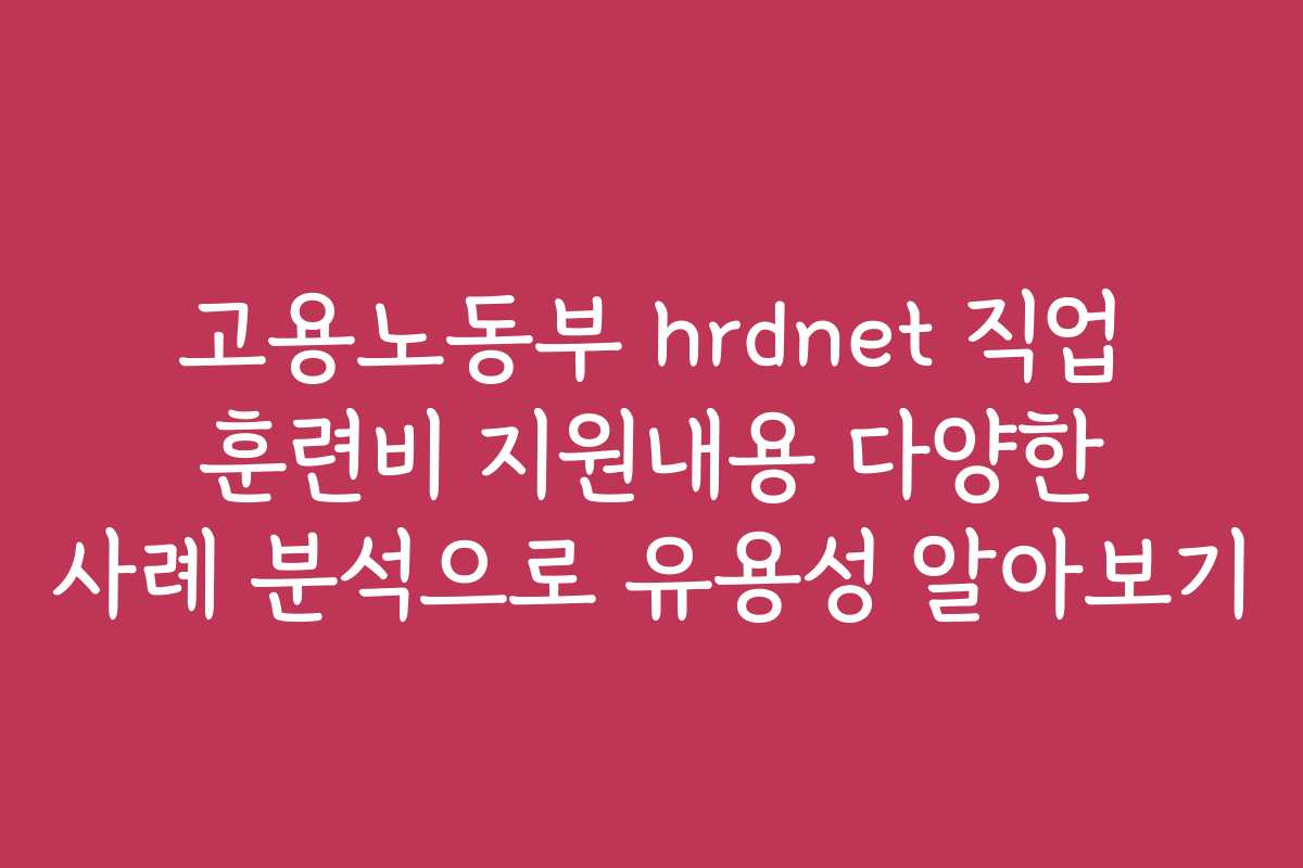 핵심 키워드: HRDnet, 직업 훈련비 지원, 고용노동부, 사례 분석, 유용성