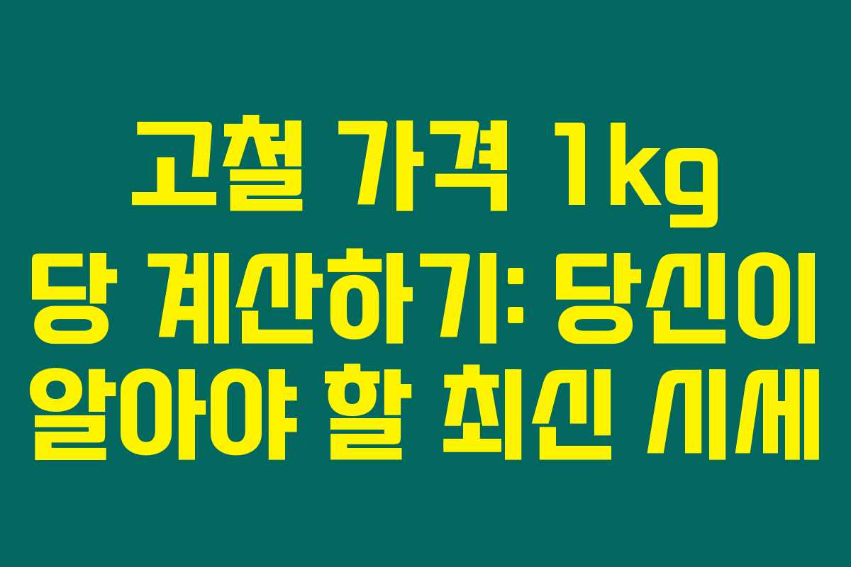 고철이 쓸모가 있다면 가격에 대한 고민은 필수입니다. 특히, 고철은 거래되는 시세와 품질에 따라 가격이 다르게 책정되기 때문에 그것을 이해하는 것이 중요하답니다. 그래서 이번 포스팅에서는 고철 가격을 1kg 단위로 계산하는 방법과 관련된 정보들에 대해 알아보도록 할게요.