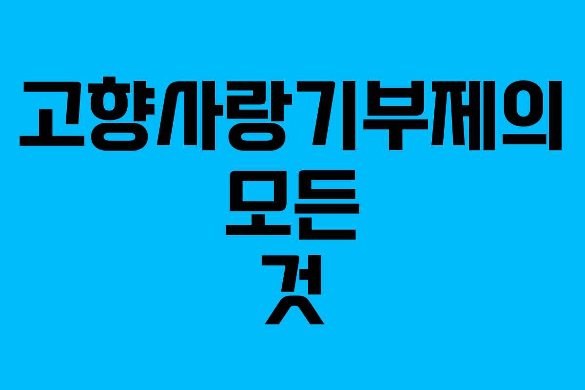 고향사랑기부제는 개인이 고향에 기부하고, 지자체가 이를 모아 주민 복리에 사용하는 제도입니다. 기부자는 세액 공제와 고향의 답례품을 통해 실질적인 혜택을 받을 수 있습니다.