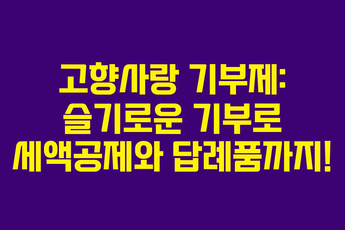 고향사랑 기부제는 고향을 살리면서 기부자에게도 다양한 혜택을 제공하는 제도입니다. 이 제도를 통해 고향에 사랑을 전하고, 세액공제와 답례품의 혜택도 함께 누려보세요!
