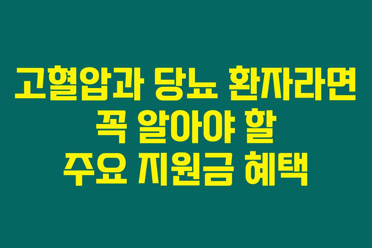 제가 직접 경험해본 결과로는, 고혈압과 당뇨 환자들은 관리가 필수적인 질환입니다. 이러한 환자들을 위해 국가와 지자체는 다양한 지원금 혜택을 제공하고 있습니다. 아래를 읽어보시면, 그 구체적인 내용과 신청 방법에 대해 자세히 알아보실 수 있습니다. 이 글을 통해 잘 확인하셔서 경제적 부담을 줄이는 좋은 기회를 놓치지 마세요!