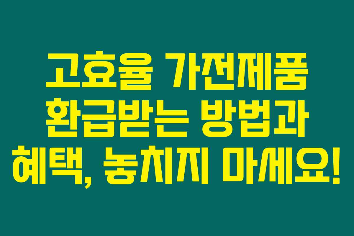 고효율 가전제품 환급 제도는 정부가 에너지 절약을 장려하려고 설계한 정책입니다. 이 정책은 소비자가 고효율 가전제품을 구매할 때 일정 금액을 환급받는 시스템으로, 일반 가전제품보다 에너지 효율성이 더 높은 제품에 적용됩니다. 제가 이 정보를 검토해본 결과, 이 제도를 통해 많은 소비자들이 환경 보호와 경제적 혜택을 함께 누릴 수 있음을 알 수 있었습니다.