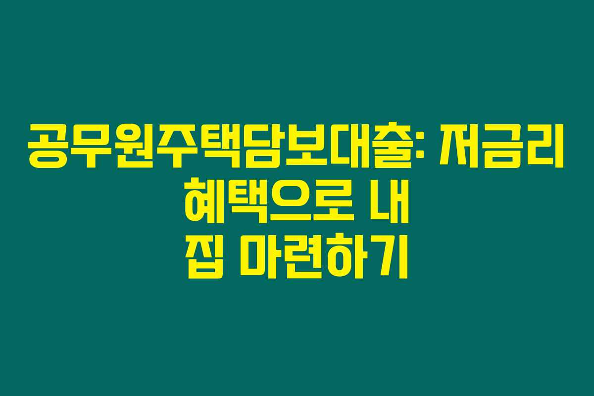 공무원주택담보대출: 저금리 혜택으로 내 집 마련하기