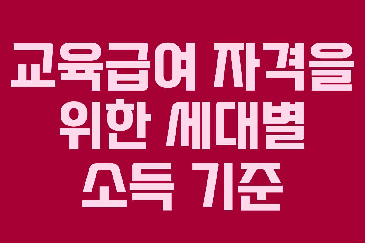 교육급여는 저소득 가구의 학생들에게 지급됩니다. 주로 기준 중위소득의 50% 이하인 가구에 해당하는 학생에게 지원됩니다.