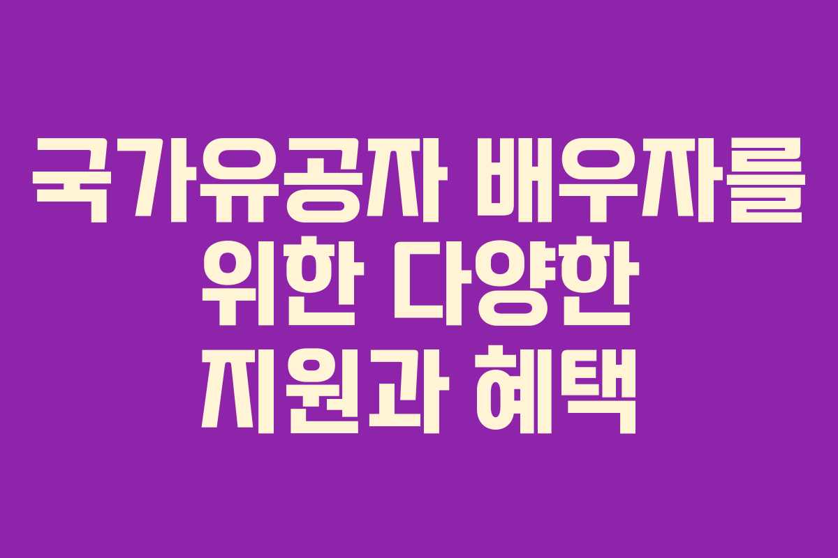 국가를 위해 헌신한 국가유공자의 배우자에게는 여러 가지 지원과 혜택이 제공됩니다. 이 글에서는 경제적 지원, 교육, 의료, 주거, 취업, 장례, 문화 등 다양한 분야에서의 혜택과 신청 방법을 자세히 안내합니다.
