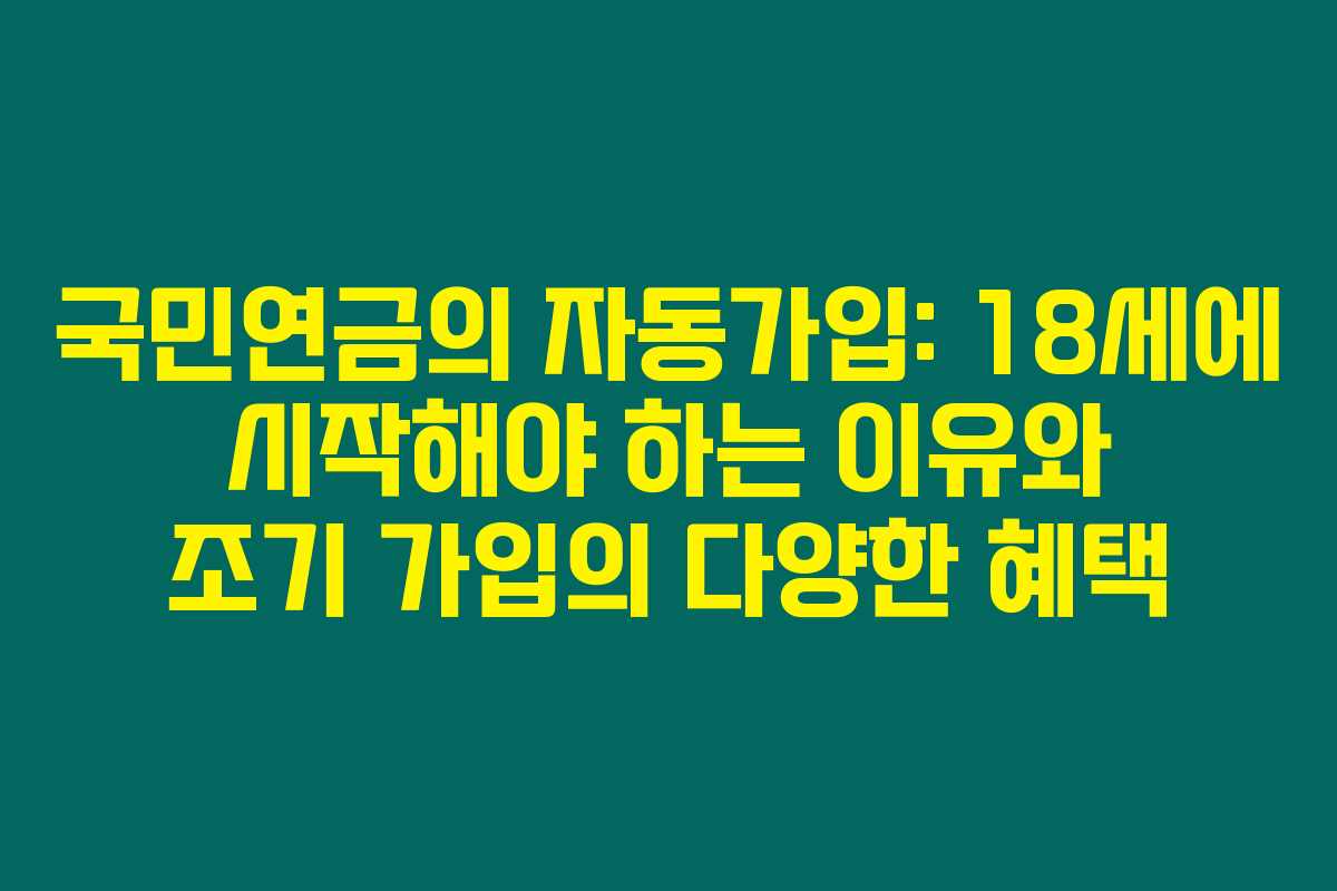 국민연금의 자동가입: 18세에 시작해야 하는 이유와 조기 가입의 다양한 혜택