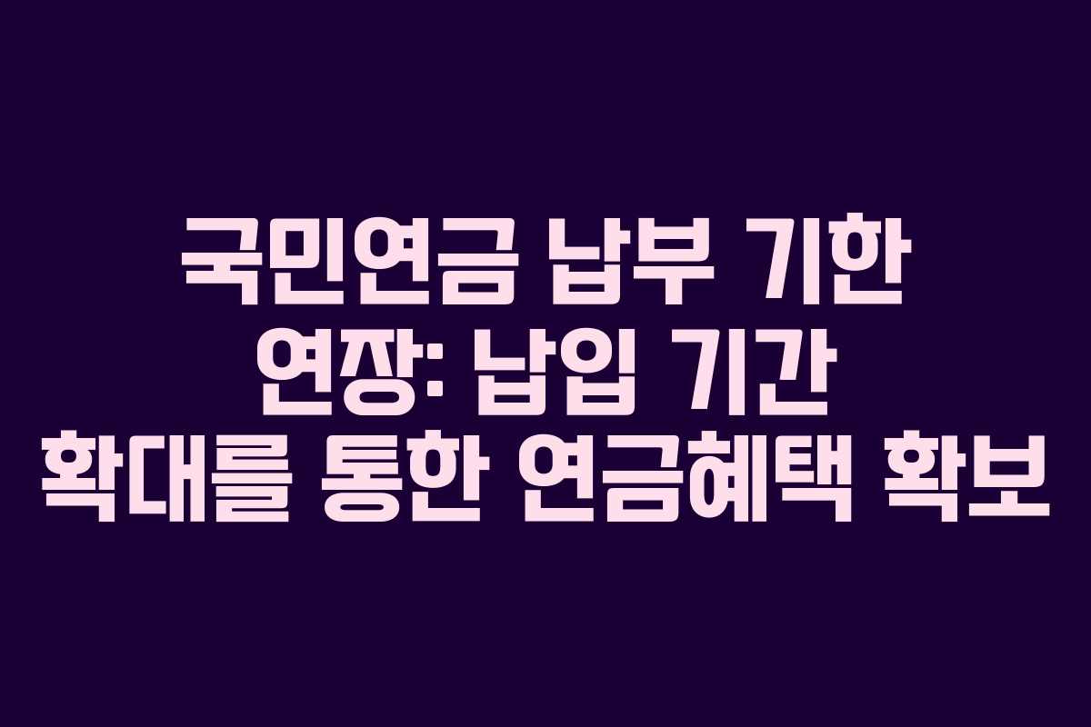 국민연금 납부 기한 연장은 안정된 노후 생활을 위한 중요한 기회입니다. 이러한 기회를 적극 활용하여 미래의 재정 안정성을 확보하시기 바랍니다.