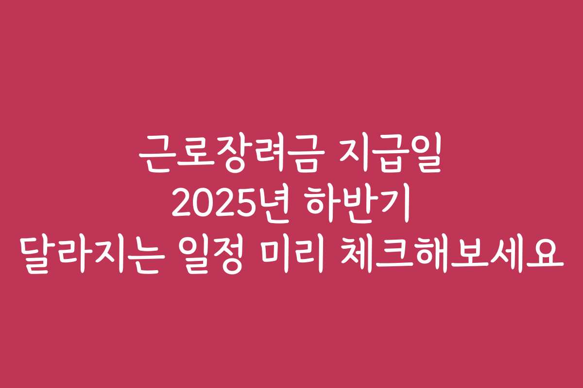 근로장려금 지급일로 고민이신가요? 많은 분들이 2025년 하반기 근로장려금의 변동성 때문에 어려움을 겪고 있습니다. 이 글에서 ‘근로장려금 지급일 2025년 하반기 달라지는 일정’에 대한 실질적인 해결책을 제시하겠습니다.