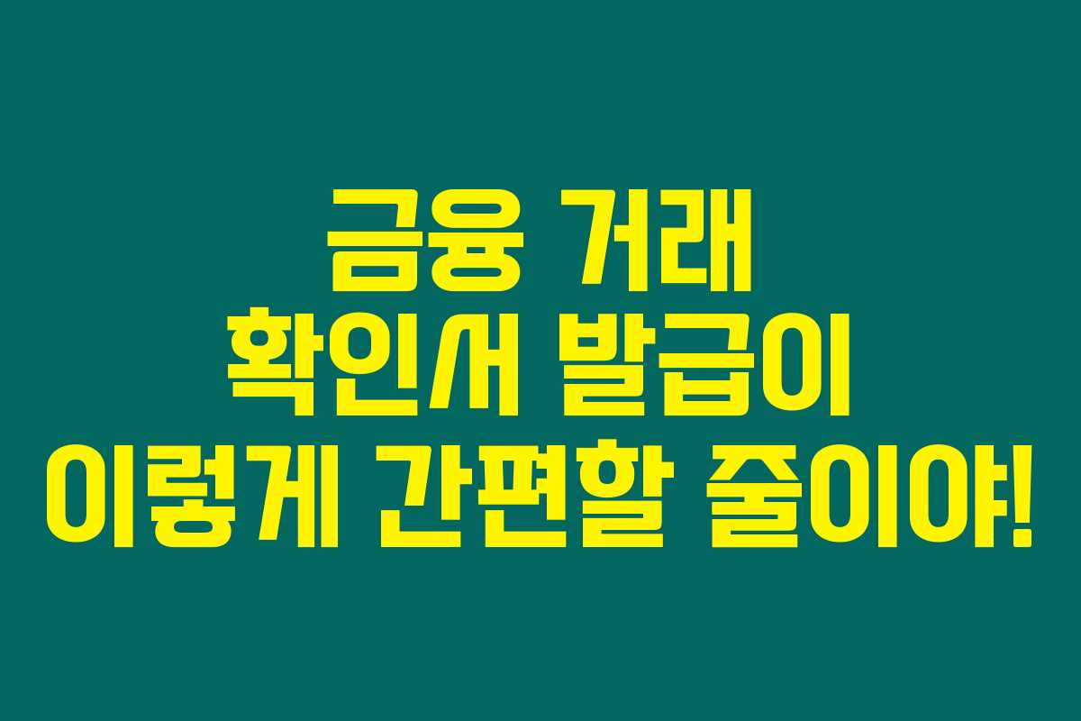 금융 거래 확인서는 은행에서 쉽게 발급받을 수 있습니다. 필요한 정보와 절차를 잘 숙지하면 간편하게 원하는 증명을 받을 수 있으니 잊지 마세요!