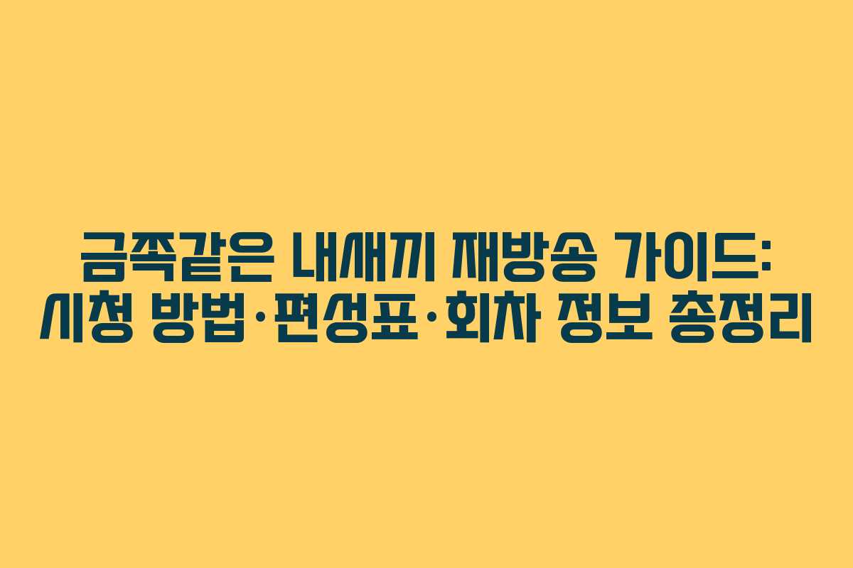 채널A의 인기 육아 프로그램 금쪽같은 내새끼 재방송 시청법과 편성 정보를 한눈에 확인할 수 있도록 정리했습니다. 온라인 스트리밍과 TV 재방송 접근 방법, 주요 회차 포인트를 빠르게 파악해 보세요.