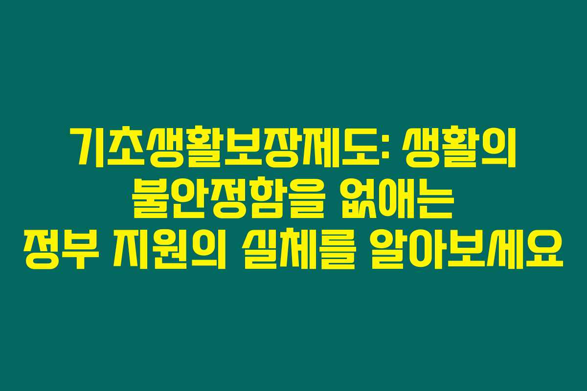 기초생활보장제도: 생활의 불안정함을 없애는 정부 지원의 실체를 알아보세요