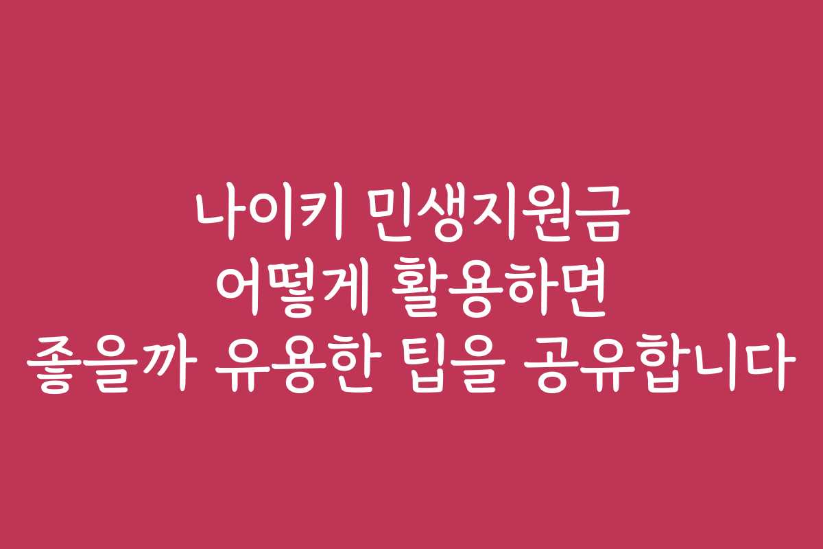 나이키 민생지원금으로 똑똑하게 활용하는 방법과 유용한 팁