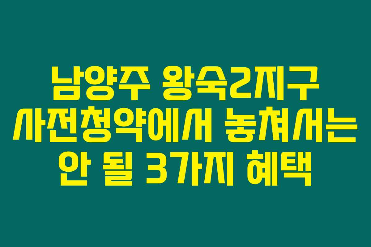 남양주 왕숙2지구 사전청약에서 놓쳐서는 안 될 3가지 혜택