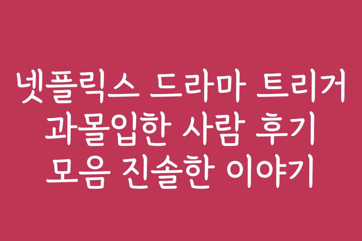넷플릭스 드라마 트리거 과몰입한 사람 후기 모음 진솔한 이야기