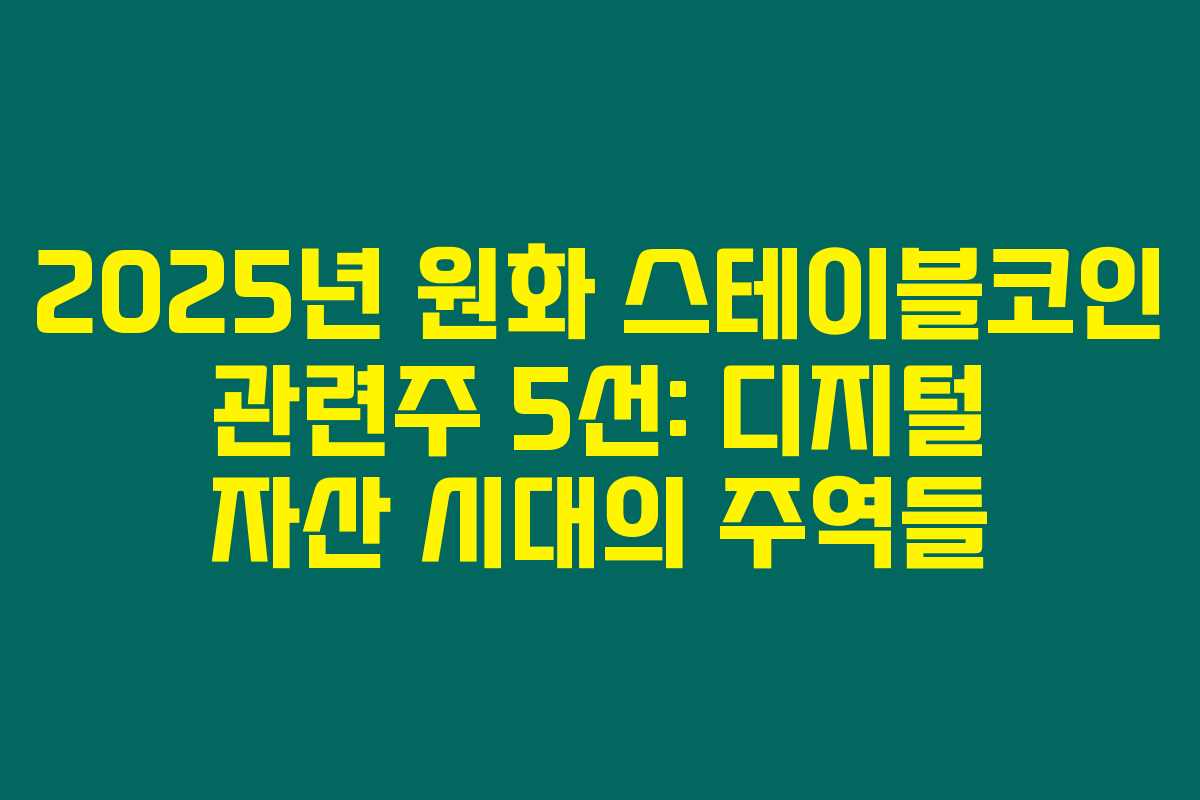 2025년 원화 스테이블코인 관련주 5선: 디지털 자산 시대의 주역들