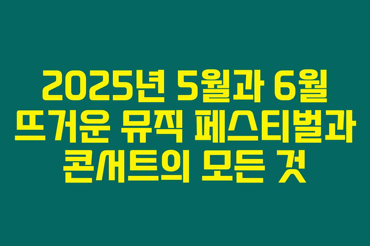 2025년 5월과 6월 뜨거운 뮤직 페스티벌과 콘서트의 모든 것