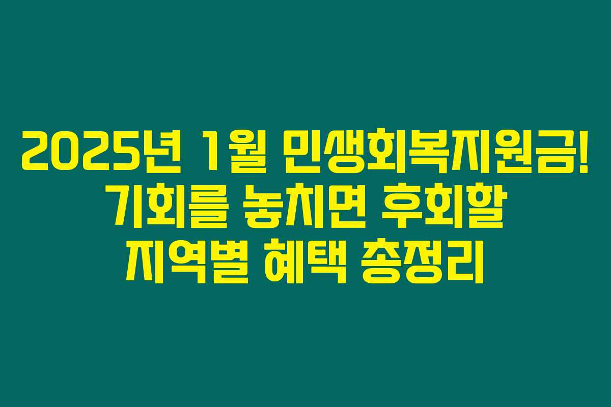 2025년 새해가 밝아오면서 민생회복지원금이 여러분을 기다리고 있어요. 혹시 이 지원금으로 경제적 도움이 필요하신 분이라면, 그 기회를 놓치면 큰 후회하실 수 있답니다. 이번 글에서는 2025년 1월 민생회복지원금의 내용과 전국 지역별 혜택을 정리해 드릴게요. 각 지자체의 지원 금액과 신청 방법을 꼼꼼히 확인하셔서 놓치는 일이 없도록 하세요!