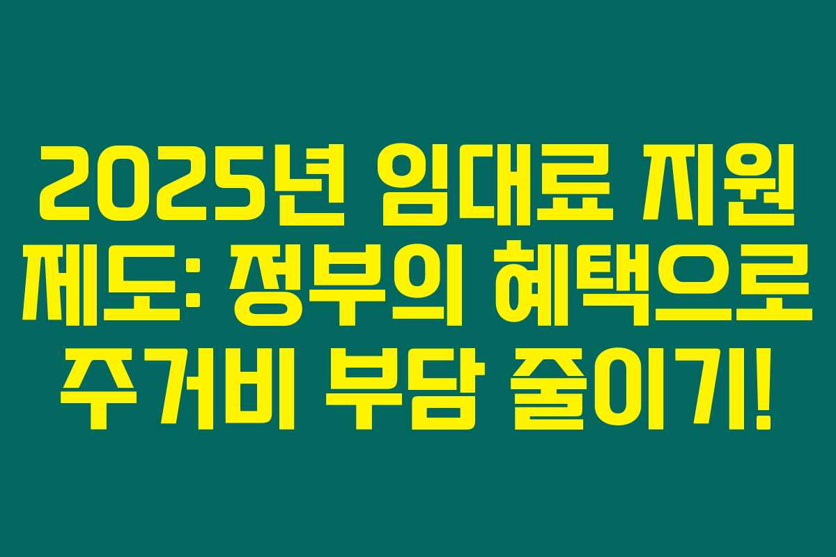 2025년 임대료 지원 제도: 정부의 혜택으로 주거비 부담 줄이기!