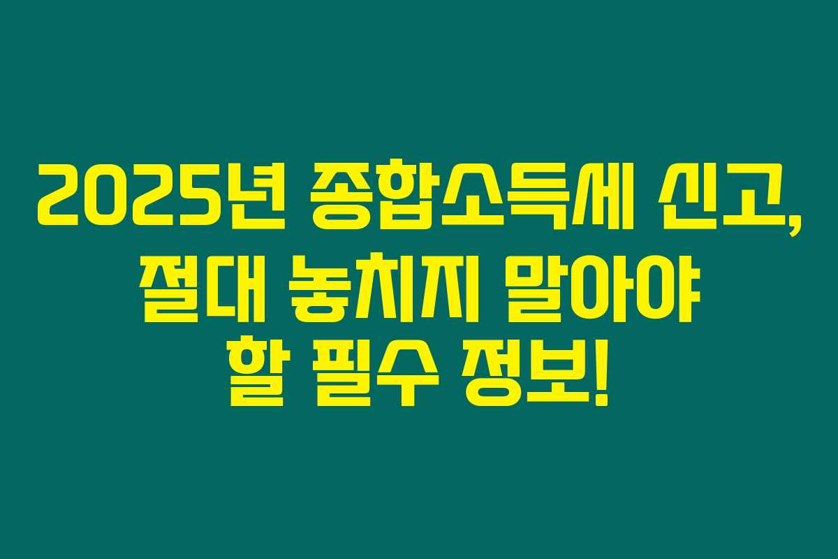 디스크립션은 텍스트로만 구성해줘. 2025년 종합소득세 신고에 대해 상세히 알려드립니다. 제가 직접 체크해본 결과로는, 이 글에서 종합소득세의 개념, 신고 일정, 세율 및 계산 방법, 홈택스를 통한 신고 절차, 환급 가능성과 절세 전략에 대해 깊이 있게 정리했습니다.