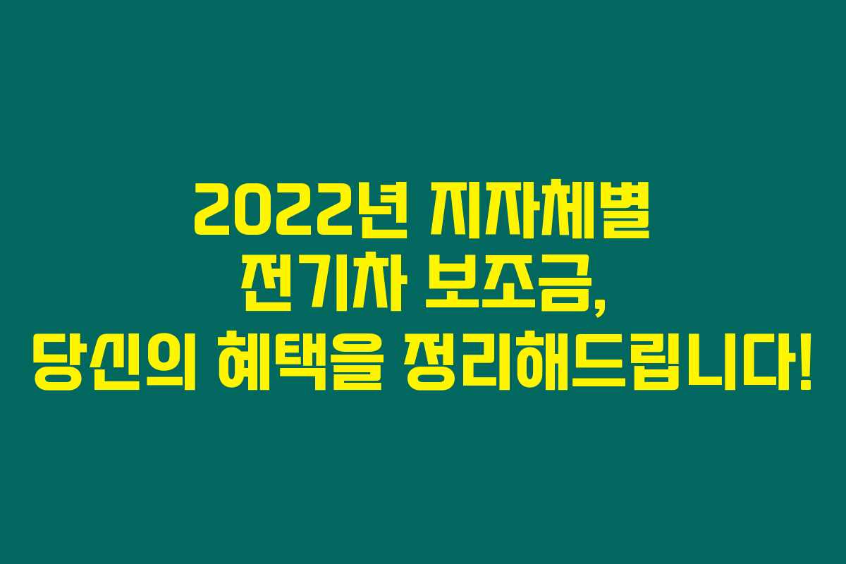 2022년 지자체별 전기차 보조금에 대한 내용을 정리해 드립니다. 각 지역마다 차이가 있는 전기차 보조금에 대해 알아보고, 어떤 혜택을 받을 수 있는지 아래를 읽어보시면 자세히 확인하실 수 있습니다.