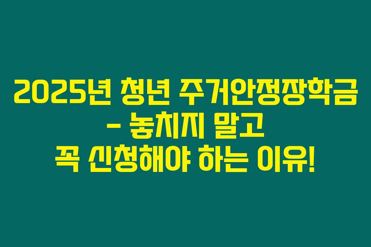 2025년 청년 주거안정장학금은 경제적 도움을 줄 좋은 기회랍니다. 학업에 더 집중하고 싶으신 분들께는 정말 소중한 지원이니 꼭 신청해 보세요!