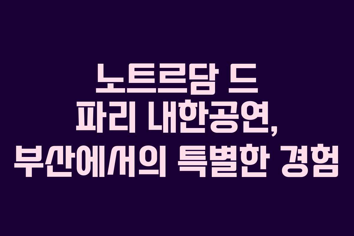 부산에서의 노트르담 드 파리 공연은 코로나19 이후 문화생활을 잃었던 많은 이들에게 큰 기대가 되었던 이벤트입니다. 2021년 12월 30일부터 2022년 1월 16일까지 진행된 이 공연은 많은 이들의 마음을 사로잡았습니다.