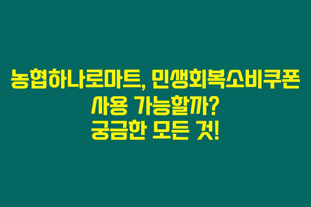 농협하나로마트에서 민생회복소비쿠폰을 사용할 수 있을까요? 이러한 질문을 가지고 계신 분들이 많을 텐데요. 이러한 쿠폰은 어떤 혜택을 가져다줄까요? 아래를 읽어보시면 농협하나로마트의 소비쿠폰 사용에 관한 모든 궁금증을 속 시원히 해결해 드리겠습니다.