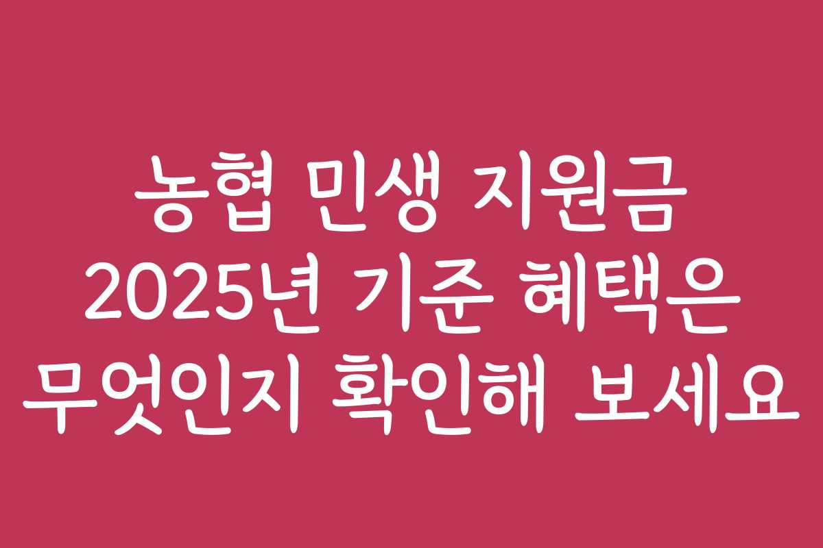 농협 민생 지원금 2025년 기준 혜택은 무엇인지 확인해 보세요