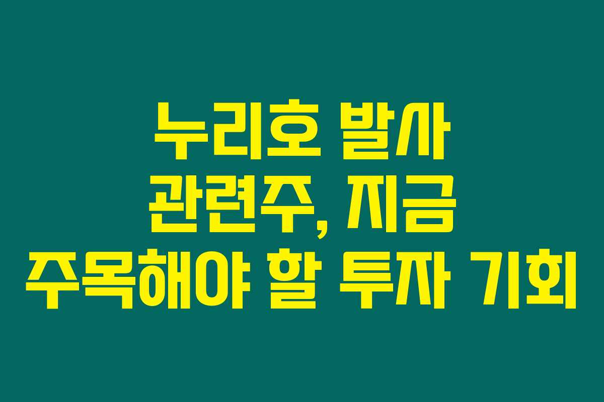 누리호 발사는 단순한 발사 이상입니다. 한국이 독자적으로 구축한 우주 발사체는 기술력의 상징이며, 관련 산업에도 큰 경제적 파급효과를 미치고 있습니다. 따라서 누리호 발사와 연관된 주식은 큰 관심을 받고 있죠. 그럼 누리호 발사와 관련된 주요 기업들을 살펴보겠습니다.