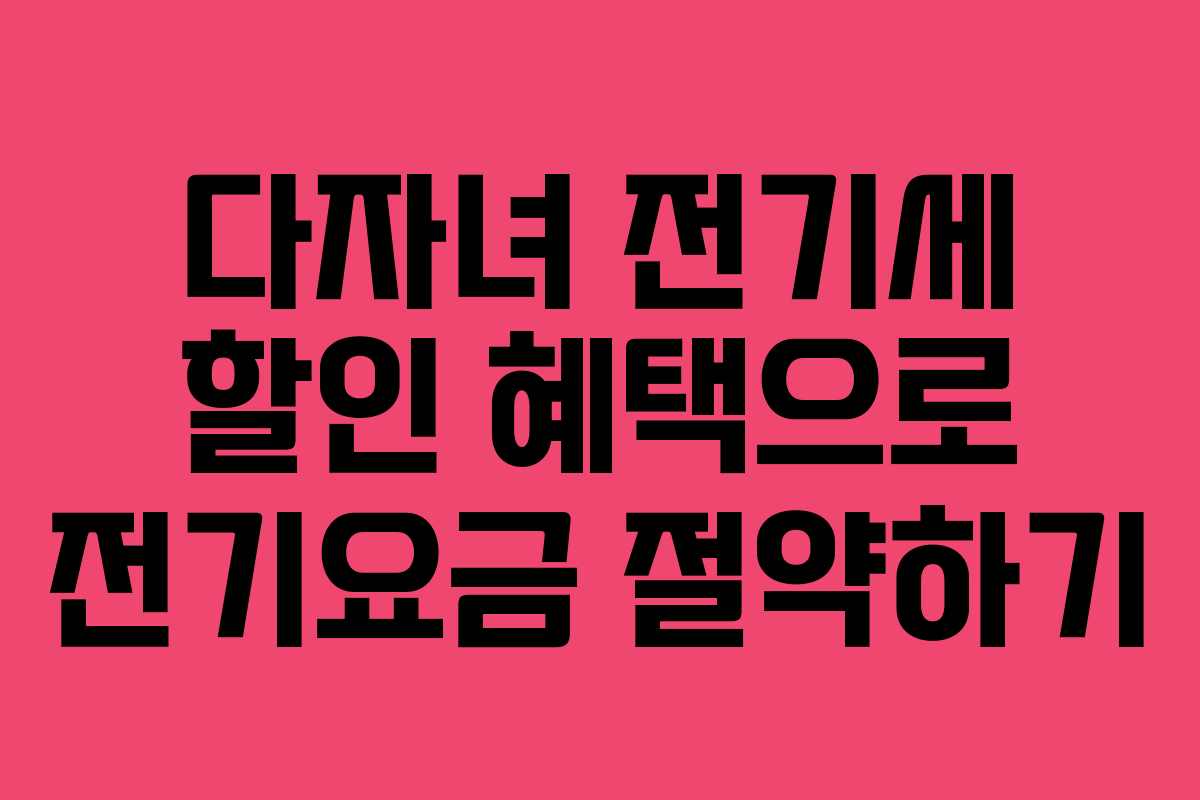 전기세는 가정의 부담 중 하나로, 다자녀 가구를 위해 제공되는 전기세 할인 혜택이 있습니다. 이 글에서는 다자녀 전기세 할인 혜택에 대한 자세한 내용과 신청 방법을 안내합니다.