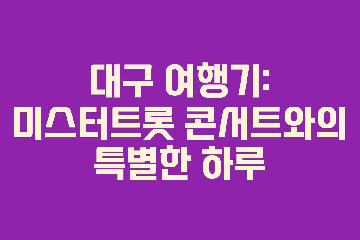 2021년 6월 19일, 대구에서의 특별한 하루를 맞이했습니다. 엄마의 오빠를 만나러 가는 길에 미스터트롯 TOP6 콘서트를 관람하기 위해 대구로 떠났습니다. 이 여행은 단순한 방문이 아닌, 오랜 기다림 끝에 열리는 콘서트와 함께하는 즐거운 시간이었습니다.