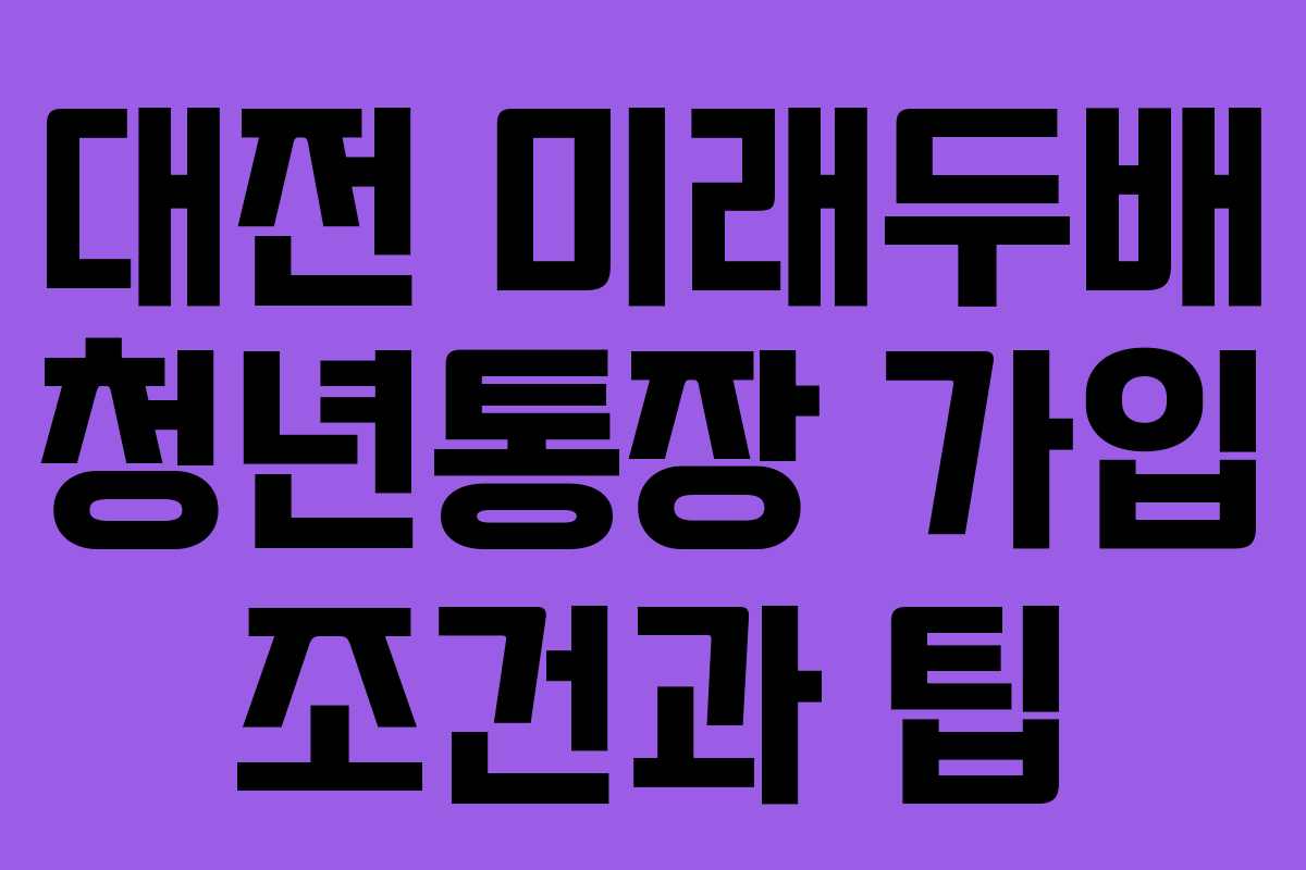 대전에서 청년들이 자산을 형성할 수 있도록 지원하는 미래두배 청년통장에 대해 알아보겠습니다. 이 통장은 매달 일정 금액을 저축하면 대전시에서 동일한 금액을 지원해 주는 사업입니다.