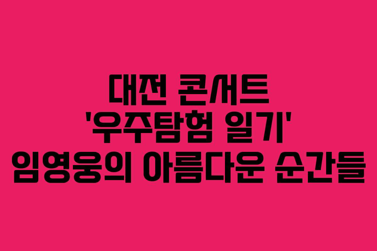 임영웅의 대전 콘서트 ‘우주탐험 일기’는 팬들에게 잊지 못할 순간들을 선사했습니다. 2023년의 마지막 날, 관객들은 그의 음악과 따뜻한 메시지로 가득 찬 특별한 시간을 보냈습니다.