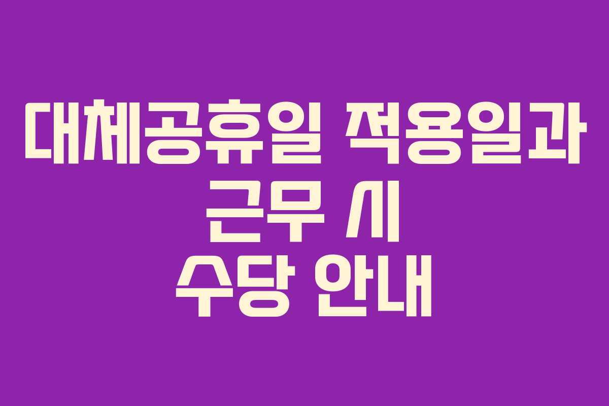 대체공휴일은 법정공휴일로서, 근무하게 될 경우 수당을 반드시 챙기시기 바랍니다. 만약 근무를 하게 된다면, 가산수당이나 대체휴가 중 어떤 방식으로 보상을 받을지 미리 확인하는 것이 필요합니다.