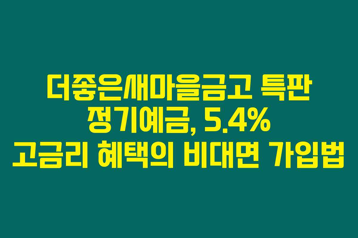 더좋은새마을금고는 비대면으로 가입할 수 있는 고금리 정기예금 상품을 포함해 다양한 상품을 제공합니다. 특히, 이번 5.4% 금리가 실제 참여 가능하니 참고하세요.
