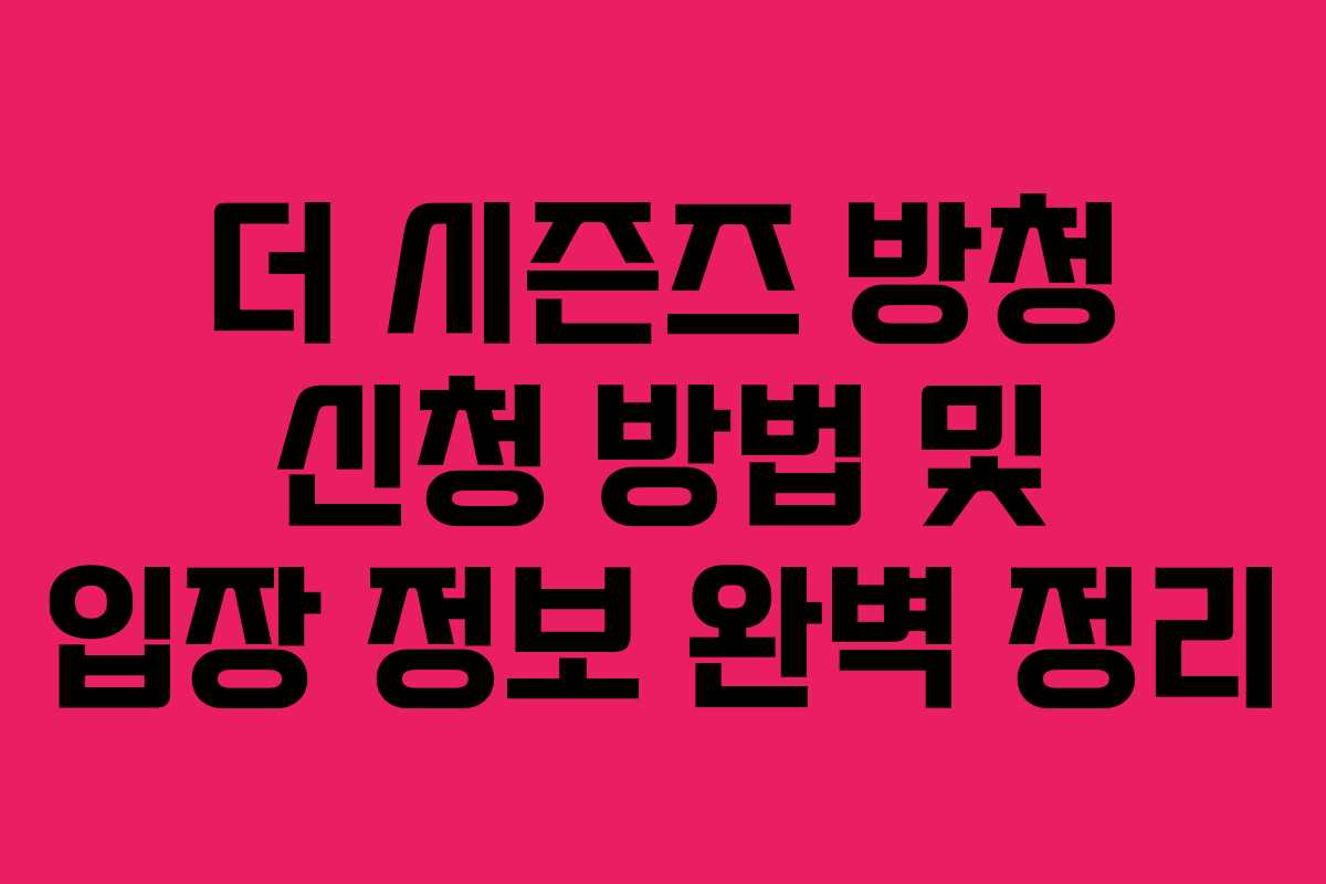 더 시즌즈의 방청 신청은 KBS 공식 웹사이트 또는 프로그램 전용 페이지를 통해 이뤄진다. 해당 링크는 다음과 같으며, 방청 신청 메뉴를 통해 접근할 수 있다. 방청 신청은 항상 열려 있는 것이 아니므로, 신청 기간을 잘 확인해야 한다.