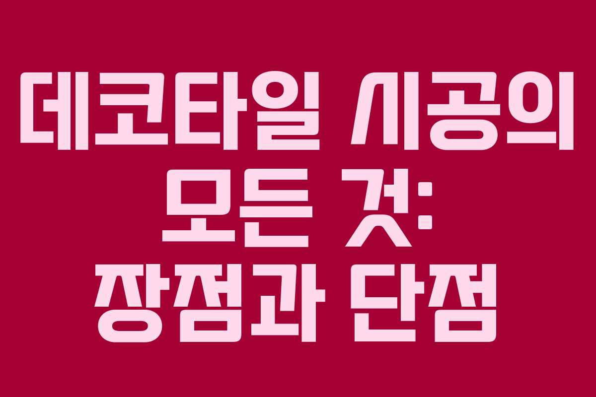 데코타일은 철거 공사가 까다로워 비용이 상당할 수 있으니 이를 미리 고려해야 합니다.