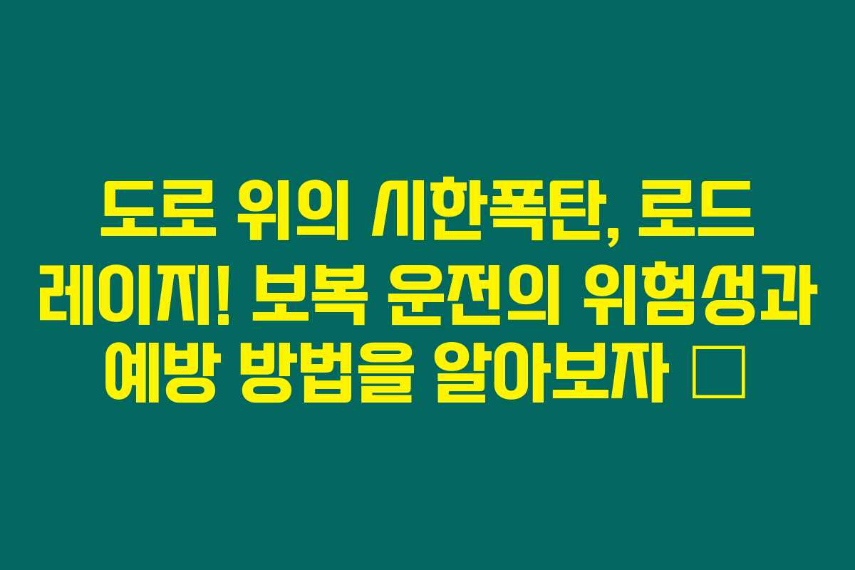 도로 위의 시한폭탄, 로드 레이지! 보복 운전의 위험성과 예방 방법을 알아보자 🚦