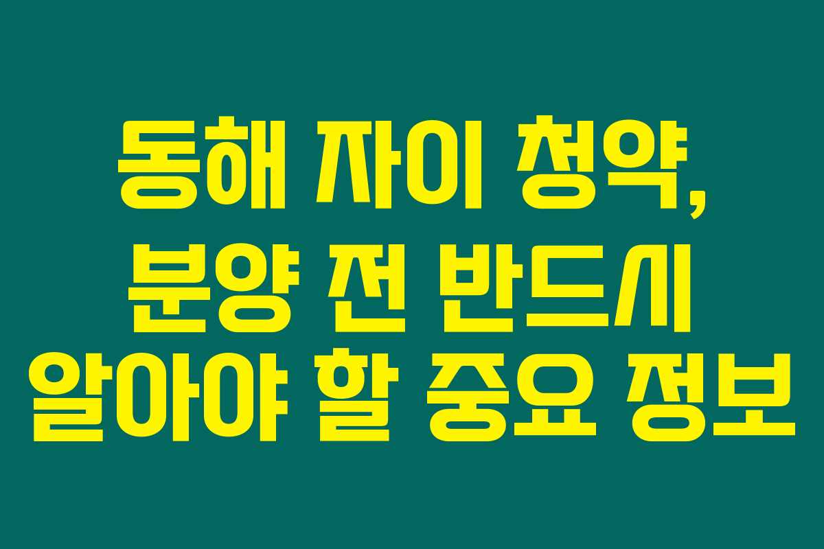 동해 자이 청약을 고려하고 있다면 꼭 알아두어야 할 중요한 내용들이 있습니다. 동해 자이 아파트가 주는 기대적 가치와 함께, 단점들도 함께 체크해야 후회를 막을 수 있습니다. 동해 자이 청약과 분양에 앞서 아래의 정보를 정확히 확인하고 준비해보세요.