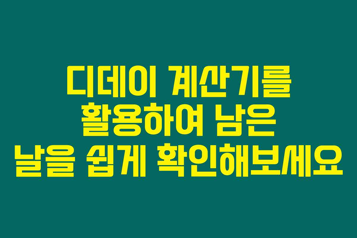 디데이 계산기는 오늘을 기준으로 남은 일수를 즉시 확인할 수 있어요. 날짜는 언제든지 바뀔 수 있지만, 이 계산기를 사용하면 항상 정확한 정보를 얻을 수 있답니다.