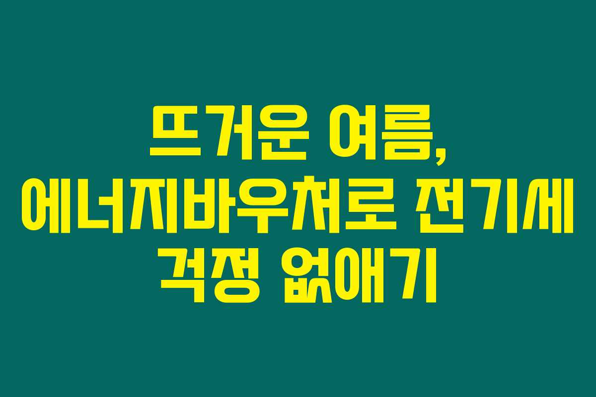 이렇게 다양한 정보들을 종합하여 보았습니다. 에너지바우처를 통해 여름 동안 전기세 걱정을 덜어보세요! 사용자 여러분의 많은 신청을 바랍니다. 에너지바우처는 여러분의 더위를 식혀줄 든든한 지원이 될 것이에요!